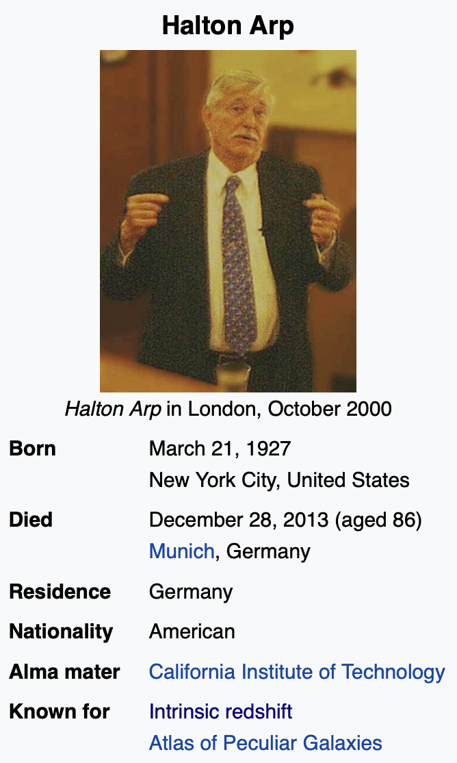 Halton Arp proposed several controversial observations based hypotheses about quasar minor axis (polar) jets of matter and multiple twin galaxies being formed at various locations along each jet axis. A lot of Arp’s work involved anomalous redshifts of these objects and the parent galaxy. Although his observation data was mostly valid, his proposed model mechanisms have been considered and dismissed as not being consistent with modern cosmological theory and improved data sets.