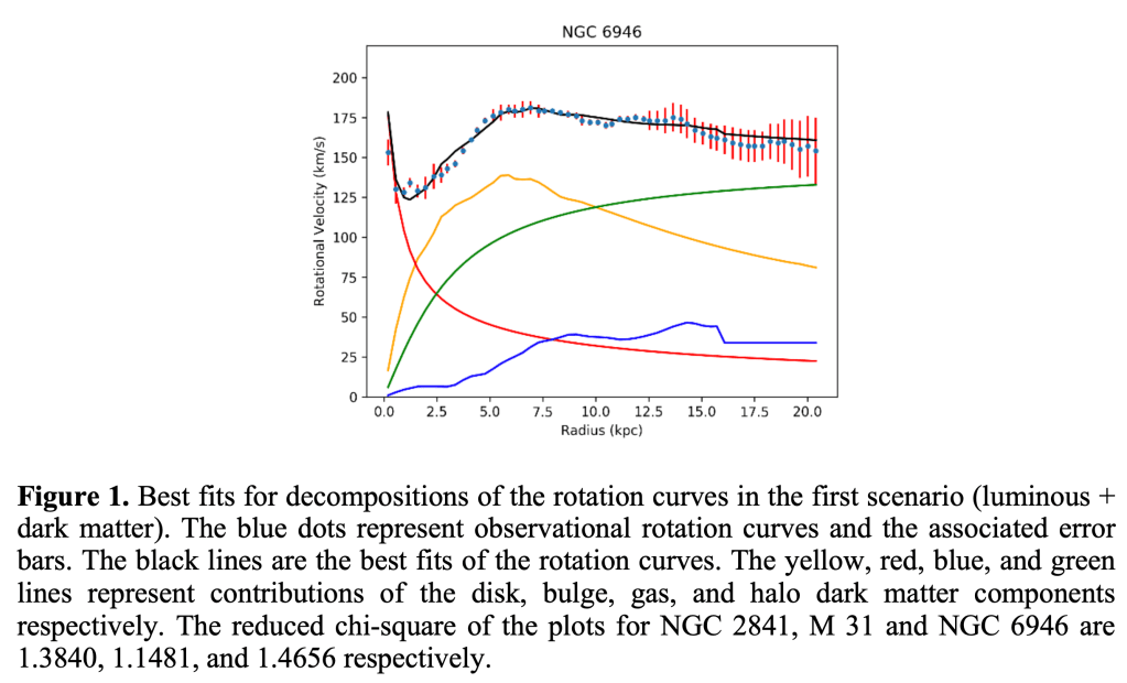 Examine the galaxy NGC 6946 rotation curve along with a dark matter model estimate of the contributing factors.