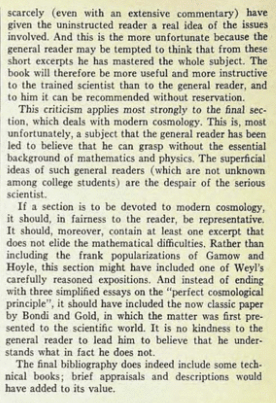 “… modern cosmology … is a subject that the general reader has been led to believe that he can grasp without the essential background of mathematics and physics. The superficial ideas of such general readers (which are not unknown among college students) are the despair of the serious scientist.”
