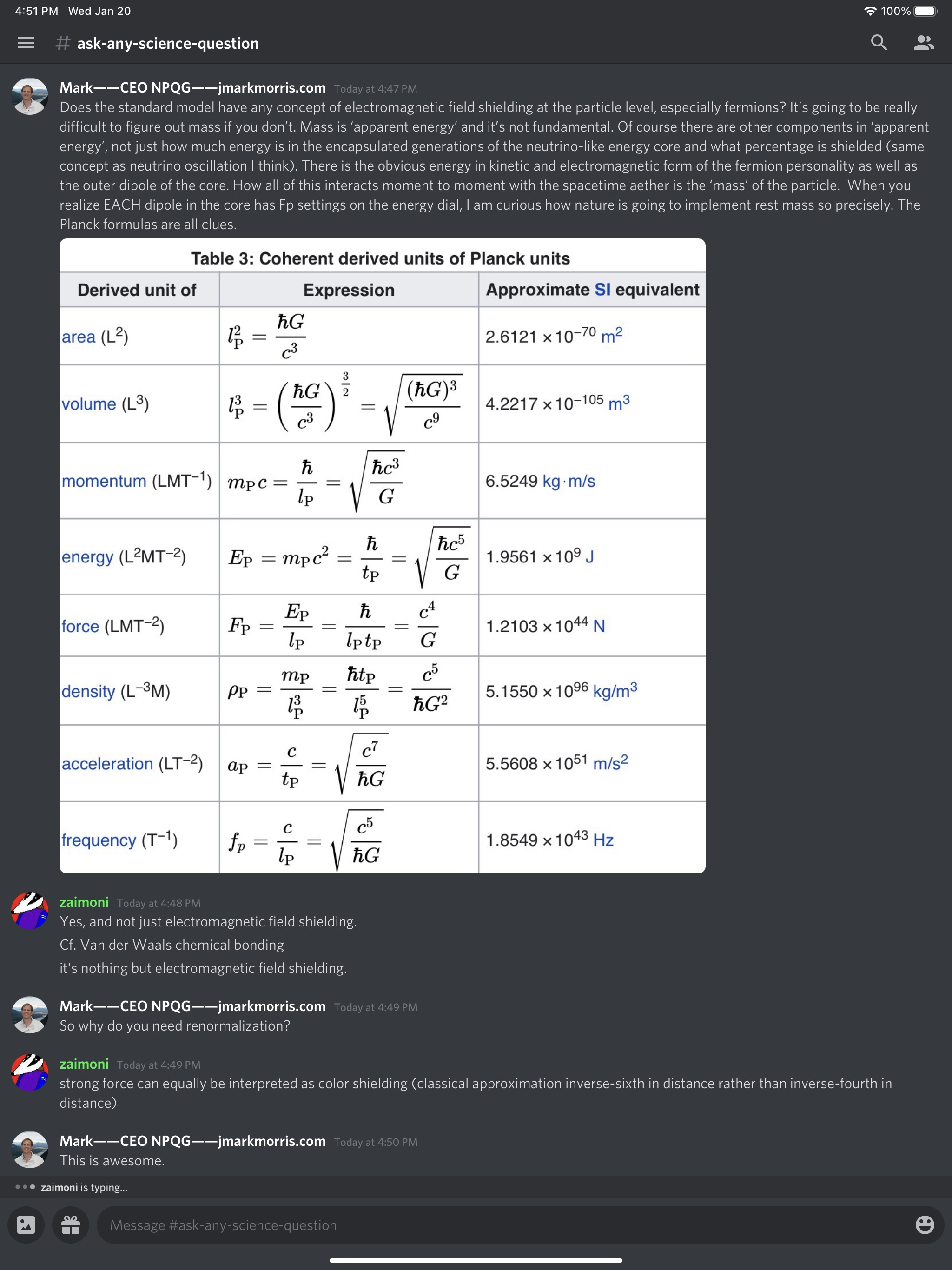 Mass is ‘apparent energy’ and it’s not fundamental. Of course there are other components in ‘apparent energy’, not just how much energy is in the encapsulated generations of the Noether energy core and what percentage is shielded (similar concept as neutrino oscillation, I think). There is the obvious energy in kinetic and electromagnetic form of the fermion personality as well as the outer binary of the core. How all of this interacts moment to moment with the spacetime aether is the ‘mass’ of the particle. When you realize EACH binary in the core has up to Planck frequency (Fp) settings on the energy dial, I am curious how nature is going to implement rest mass so precisely. The Planck formulas are all clues.