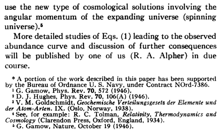 The αβγ paper was written at a time when there was a vague understanding that there must be some unknown high energy event that preceded and generated the conditions from which the elements precipitated. Although the αβγ paper is extremely vague regarding the processes that might generate the elements, in short order, the idea of a single Big Bang emerged from the minds of physicists and quickly became cemented into the set of faulty interpretations of the GR/QM/LCDM era. Unfortunately this interpretational wrong turn into the Big Bang will be painful to undo since it is baked in to so much of the narrative in textbooks, papers, and outreach material.