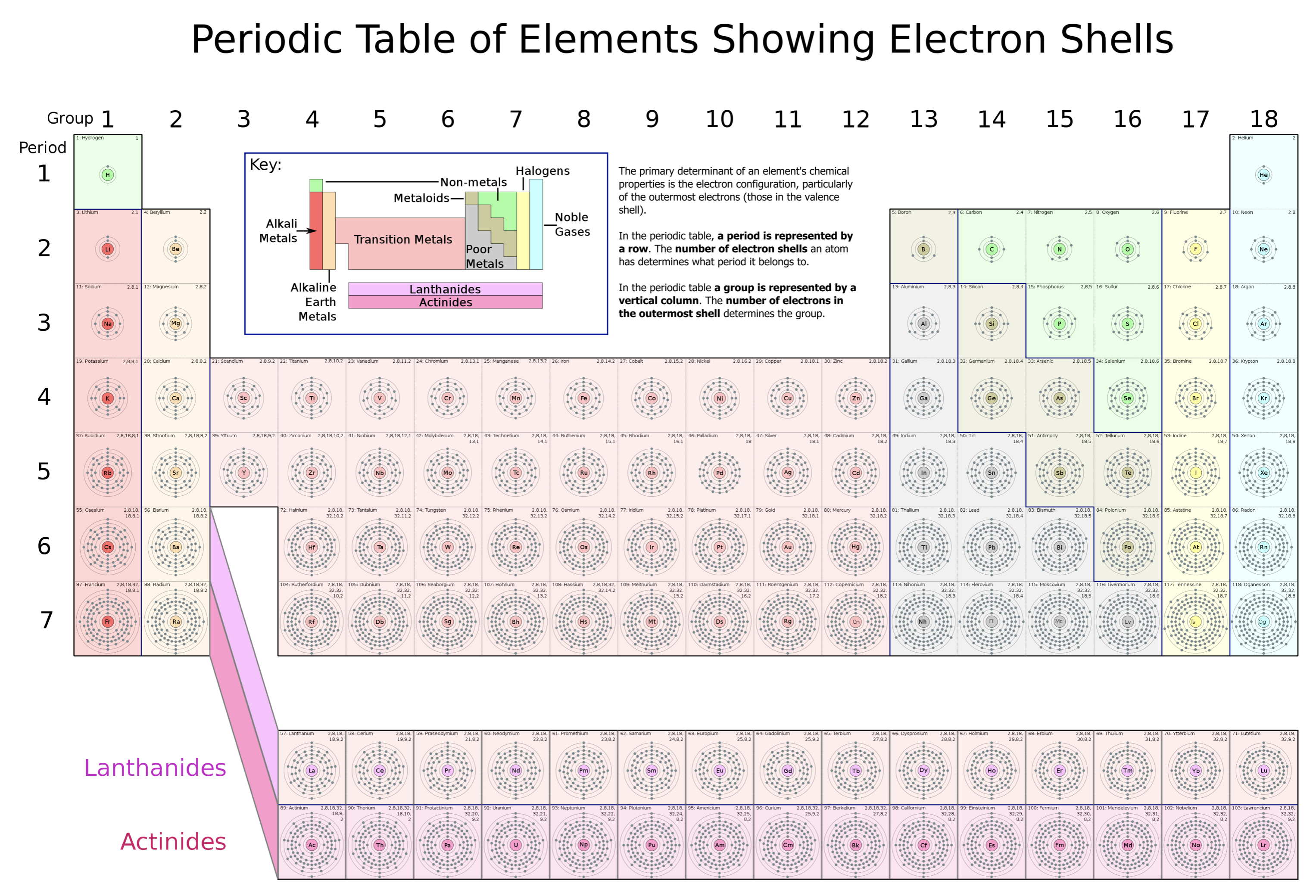 I love this visual version of the periodic table of elements showing electron shells. I love the duality between this form of depiction and my diagram of the point charge implementation of the standard model. You can see how the patterns at the standard model influence the dual patterns in the periodic table of elements.