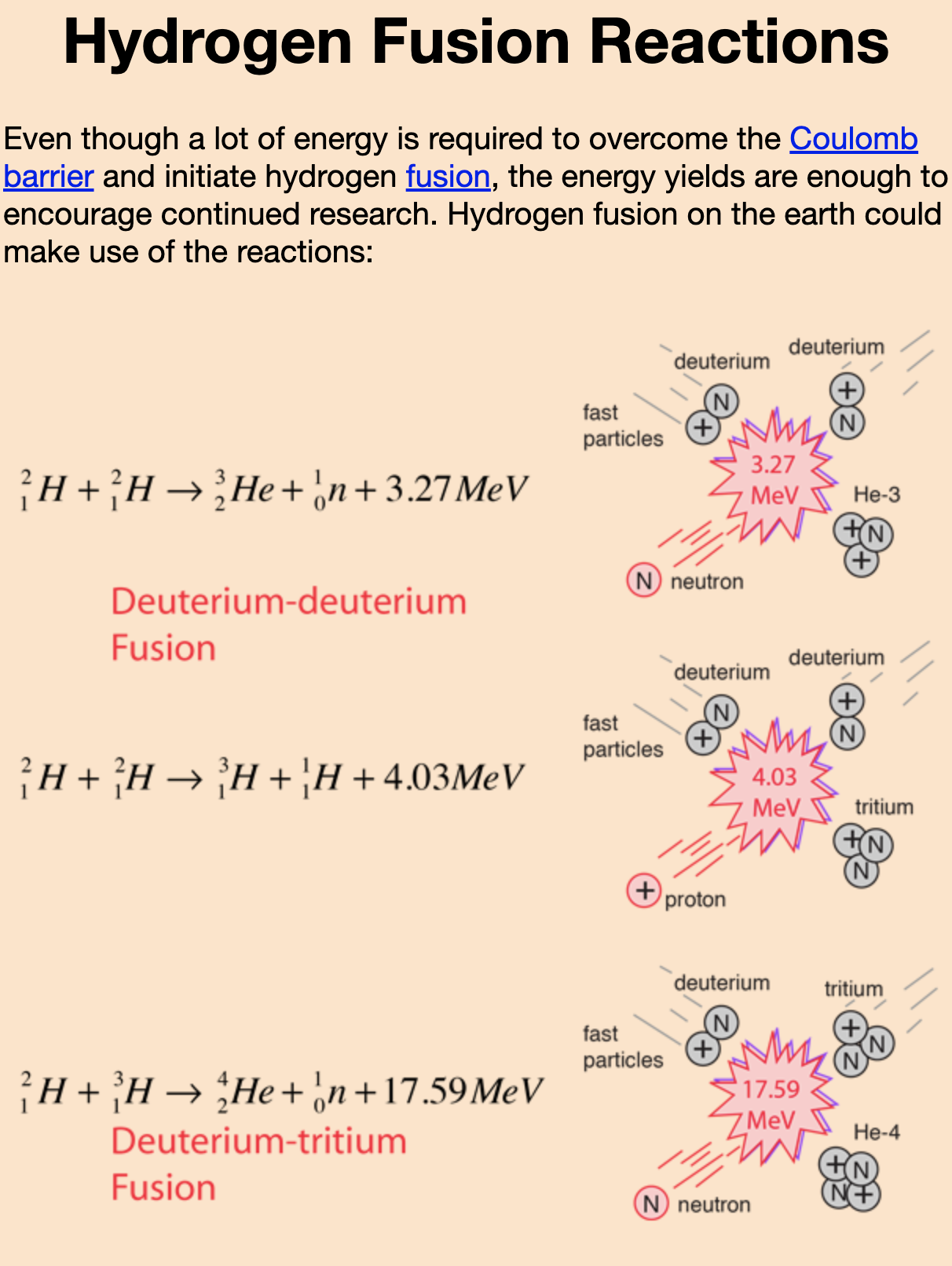 Okay. That’s a lot of background to review. What is physically happening during fusion? These are collisions of nuclei, so there are no electrons involved. Each nucleon is composed of three quark personality tri-binaries. Interestingly neither the number of protons nor the number of neutrons change in the reaction. Also, there is no reference to photon emission. Can we presume that this is a relatively low energy reaction where nucleons retain their form? Or is it possible the reaction redistributes quark components a bit, and it all equals out? My intuition would be to first guess that (most or all?) nucleons retain their integrity throughout this process.