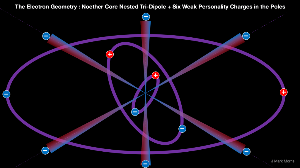 Brainstorm : What if when doing work to accelerate an assembly to higher speed, the Noether cores tilt even more aligned? The farther tilt you go the more effect from history potential. Then when the work stops, the tilt eases to the angle determined by the new velocity. This is fascinating. If this were correct, it would be a whole new way of understanding basic nature, including F = ma. Would it mean that momentum is maintained by history potential of a particle’s Noether core point charges? It makes sense at a high level, because energy is conserved. But could the axial tilting of the Noether core binaries be the implementation? That’s a really interesting thought!