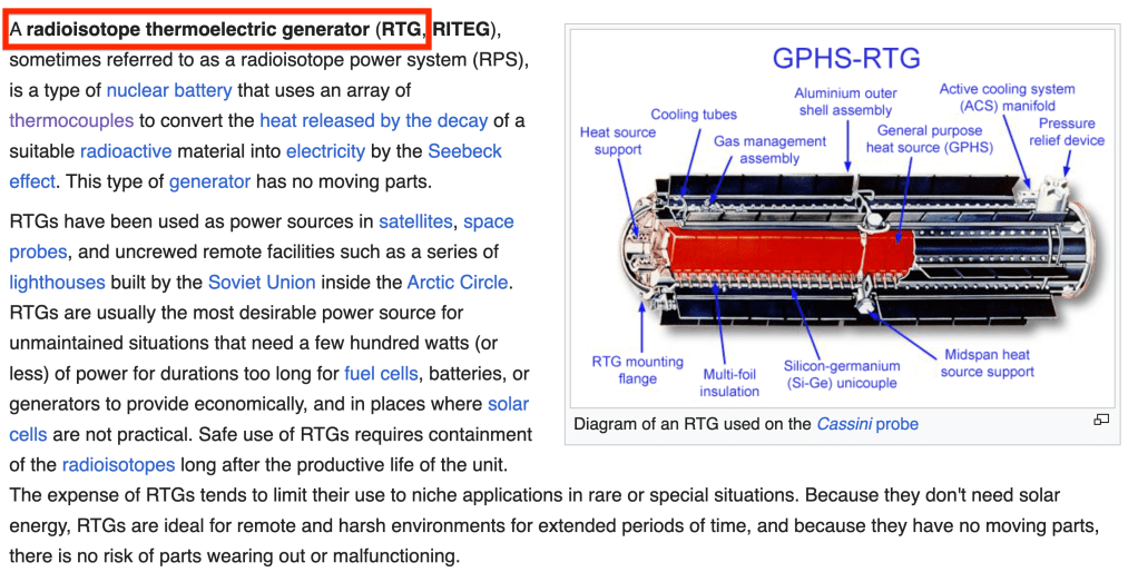 RTG’s are advanced technology by current standards. Yet, if you knew the point charge process network you would see that it is a complex Rube Goldberg machine. There is no doubt that there are processes many orders of magnitude more efficient and optimized.